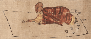 It was only recently, when I looked at the back of the manuscript, that I started to think I might have solved this puzzle. There’s a single line of Chinese writing, saying “Lotus Sutra, seventh fascicle”. Now, this could be nothing to do with the picture. I’m all too familiar with scrolls that have been reused for notes, writing exercises and, of course, idle doodles. But this picture is more than a doodle. Surely it means something.