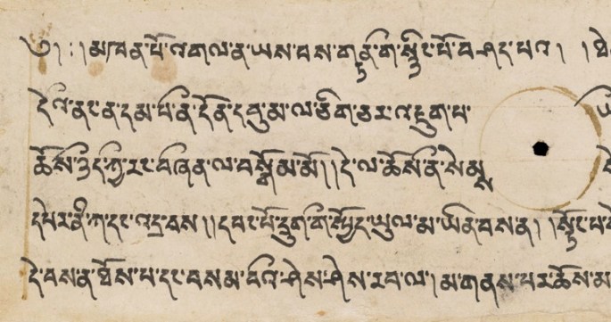 Let’s look at the text. It is found in the compendium IOL Tib J 709, and is presented as the teaching of a certain ’Gal na yas. So far nobody has identified this figure, but I think I have — the name seems to be a somewhat garbled rendering of Haklenayaśas, the 23rd patriarch of Chan. (The Chinese version of his name, by the way, is Helenayeshe 鶴勒那夜奢, and that initial H would have been pronounced more like G in this period.) The teaching attributed to this Indian master is “the instantaneous approach to the Madhyamaka”:-